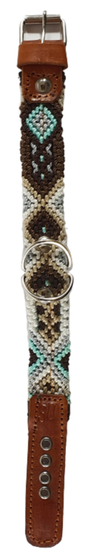 Give your pet a unique and stylish accessory with this handcrafted pet collar, designed by skilled Mexican artisans. Made with high-quality waxed thread and leather, this collar combines traditional craftsmanship with artistic flair, making it the perfect choice for pet owners who appreciate distinctive and elegant pet accessories.